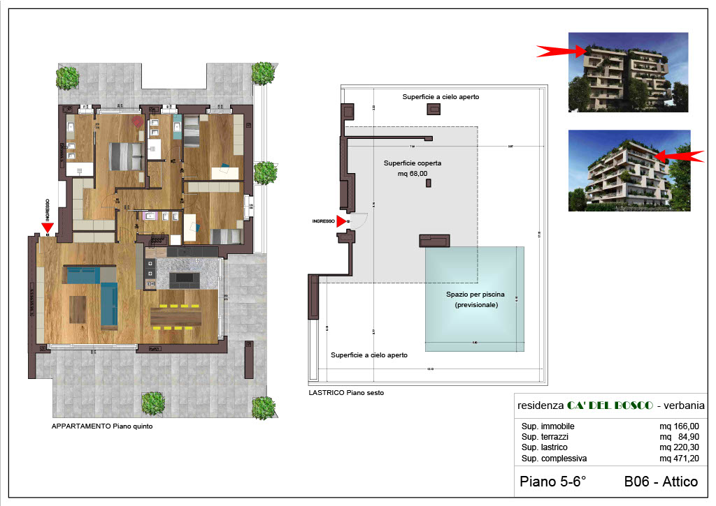 Se vuoi rendere questa proposta davvero unica, è disponibile su richiesta il lastrico solare di proprietà esclusiva, accessibile direttamente dal vano scala e dall’ascensore: uno spazio da personalizzare e attrezzare a piacimento, con zona scoperta panoramica, angoli relax e zona coperta con locali accessori, ideale per creare una mini spa, cucina esterna o area lounge.